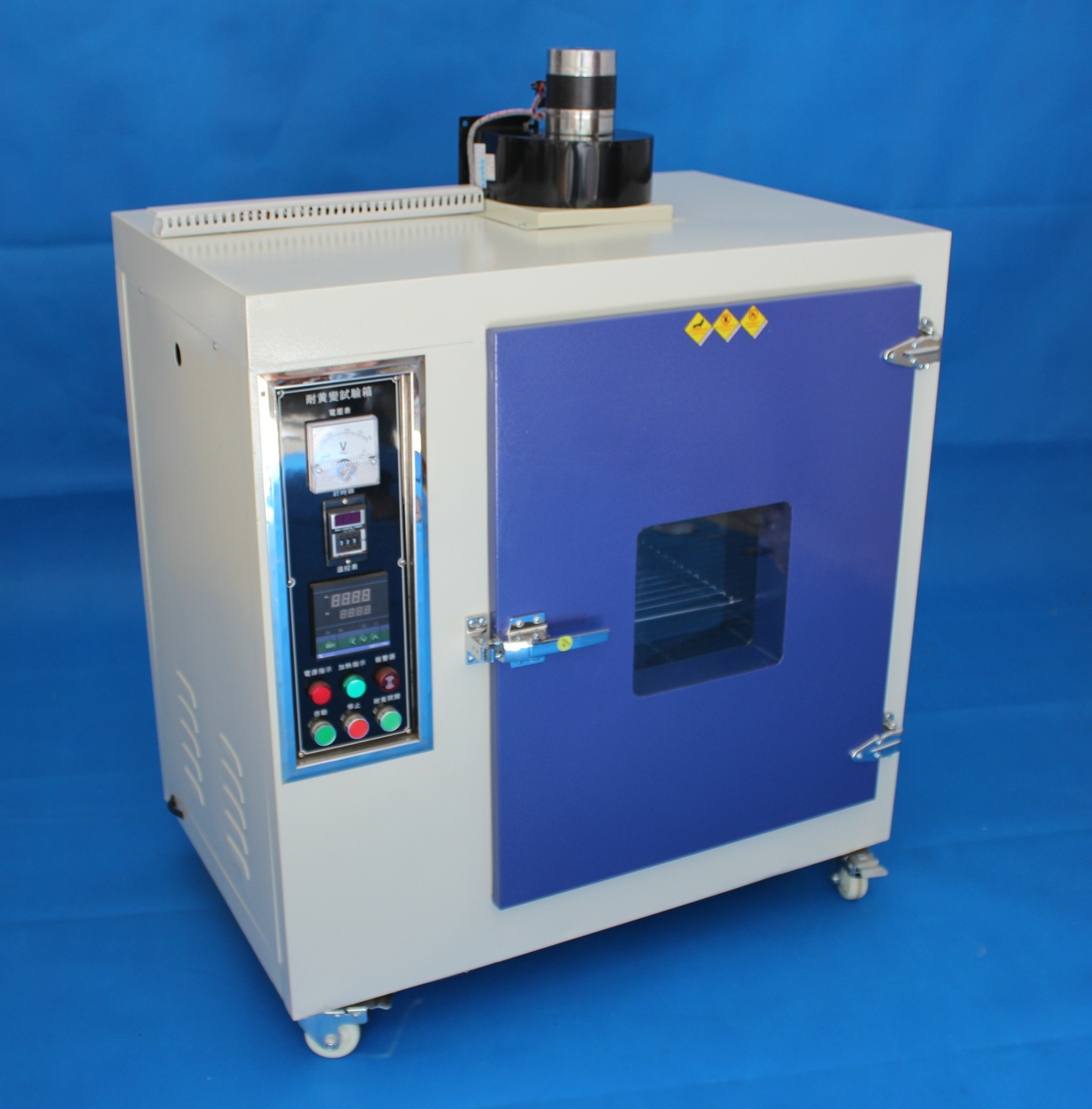 用于材料的黃變加速試驗(一般在70℃時材料此箱內試驗3小時相當于自然界環境中2個月黃變結果)。可用污染灰色標做參判定材料黃變等級。也可以目測材料的黃變程度