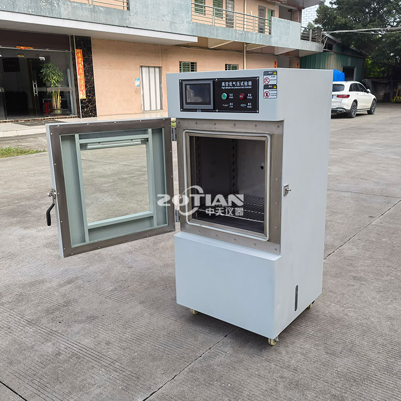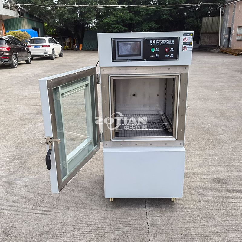 本試驗機箱針對UL、EN、IEC等標準試驗要求而設計,在短時間內達到樣品的低氣壓存放狀態,可自動控制試驗周期,全程監控箱內氣壓變化,實現試驗的自動終止。模擬電池和電池組在壓力等于或低于11.6KPA和環境溫度為(20+5)C條件下存放6小時,如果電池無滲漏,無排氣,無解體,無破裂和無起火,并且每個實驗電池或電池組在試驗后的開路電壓不小于其在進行模擬實驗前的電壓的90%,即為合格。