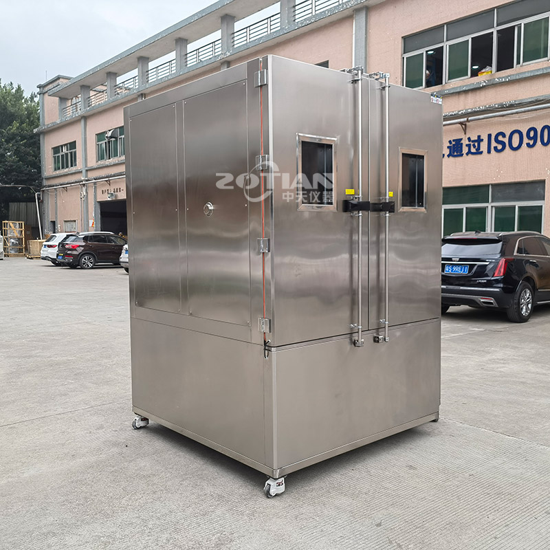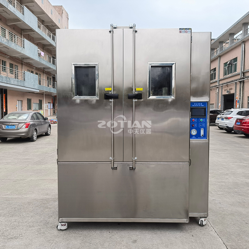 沙塵試驗箱學(xué)名為“砂塵試驗箱”,模擬自然界風(fēng)沙氣候?qū)Ξa(chǎn)品的破壞性,適用于檢測產(chǎn)品的外殼密封性能,主要用于外殼防護等級標(biāo)準(zhǔn)中規(guī)定的IP5X和IP6X兩個等級的試驗。設(shè)備有載灰塵垂直循環(huán)的氣流,試驗用灰塵可以循環(huán)使用 ,整個風(fēng)道采用進口不銹鋼板制作,風(fēng)道底部與錐形料斗接口連接,風(fēng)機進出風(fēng)口直接與風(fēng)道連接,再在適當(dāng)?shù)奈恢蒙蠈⒐ぷ魇翼敳繑U散口接入工作室體,形成“O”型閉式垂直吹塵循環(huán)系統(tǒng),使氣流能順暢地流動,Z大限度的使塵土分散均勻。采用單臺大功率低噪音離心風(fēng)機,根據(jù)試驗需要用變頻調(diào)速器來調(diào)節(jié)風(fēng)速