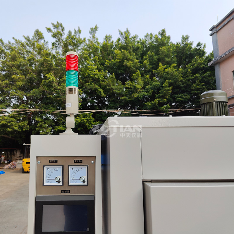380V,三相四線制,加熱功率 9KW,配控制電箱于烤箱頂部,采用優(yōu)怡觸摸屏控制器,配有 PV 和 SV 數(shù)字顯示窗口。提供 USB 接口:可記錄運行中溫度值,可下載各種測試參數(shù)信息。采用SSR 固態(tài)繼電器控制加熱器,顛覆傳統(tǒng)過零觸發(fā)時帶來的電流瞬間沖擊大、控溫波動大等影響,配合性價比極高的 DC24V 輸出型控制器,可使輸出電壓平穩(wěn)線性變化,控溫效果更穩(wěn)定,性能更穩(wěn)定,使溫度更加精準(zhǔn),溫度由室溫+10℃-400℃可調(diào)。功能有 PID 自整定微積分控制、使溫度更加精準(zhǔn),控溫精度±0.5℃,內(nèi)部溫度均勻性±3℃(空載測試)。自動恒溫、自動計時(配有高精度數(shù)顯計時器可調(diào) 99 小時 99 分鐘)溫度到后定時報警斷加熱、超溫報警斷加熱、電源缺相相序保護(hù)等功能,及其它正牌電器控。