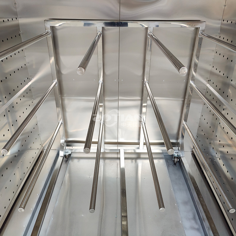 外形采用 1.5mm 厚冷板折彎焊接而成,表面噴電腦白工業(yè)漆(非普通油漆),防生銹,外形尺寸:寬 1600mm,深 830mm,高 1860mm,雙開門, 配加強型不銹鋼門鎖,拉手。底部配可移動剎車腳輪,方便烤箱移動固定。